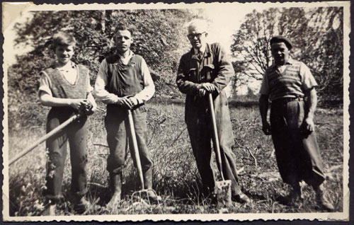 Ignatius McGahan, Frank Grant, Joe McCrory & Joe Govan maintaining grounds at Donaghmore Convent.