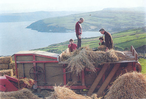 Farmers demonstrating the shared responsibility in the community towards farming, particularly trashing.