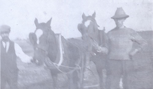Tommy James McDonald and Arthur Kerr pictured with their horses. Tommy & Arthur were joined in farming with their horses (1920’s)